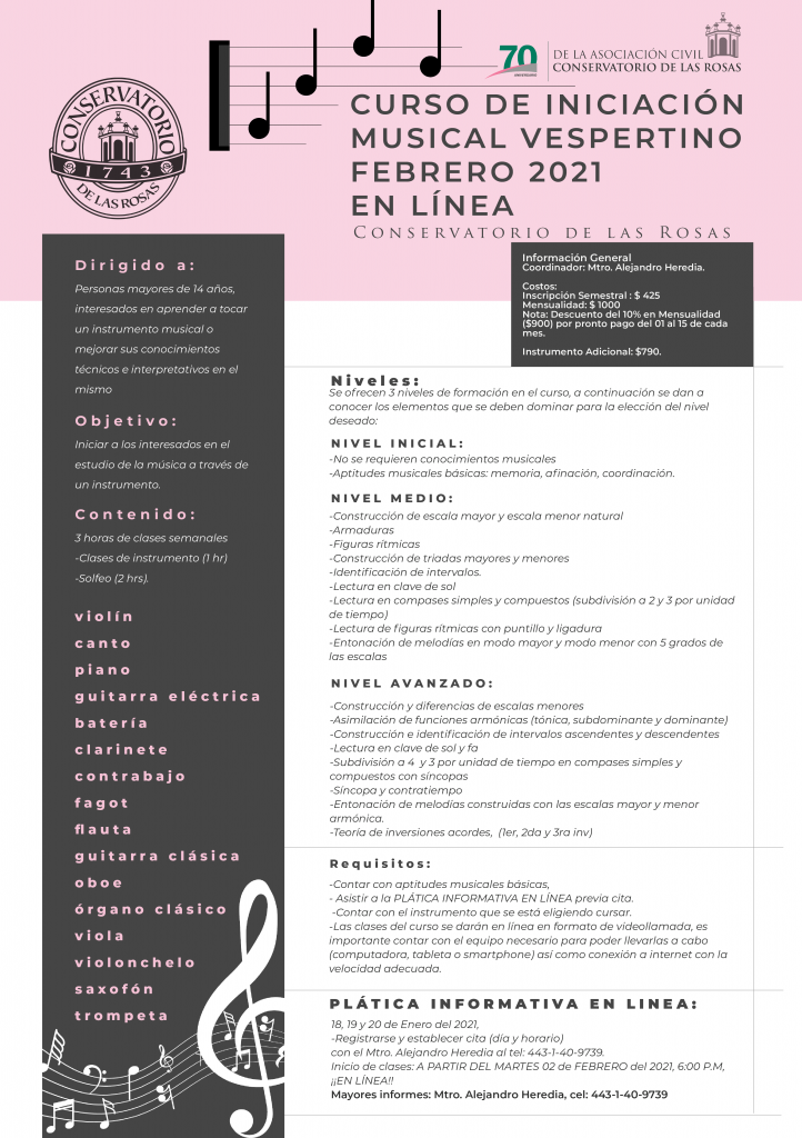 Curso de iniciación musical vespertino Febrero 2021 (En línea)