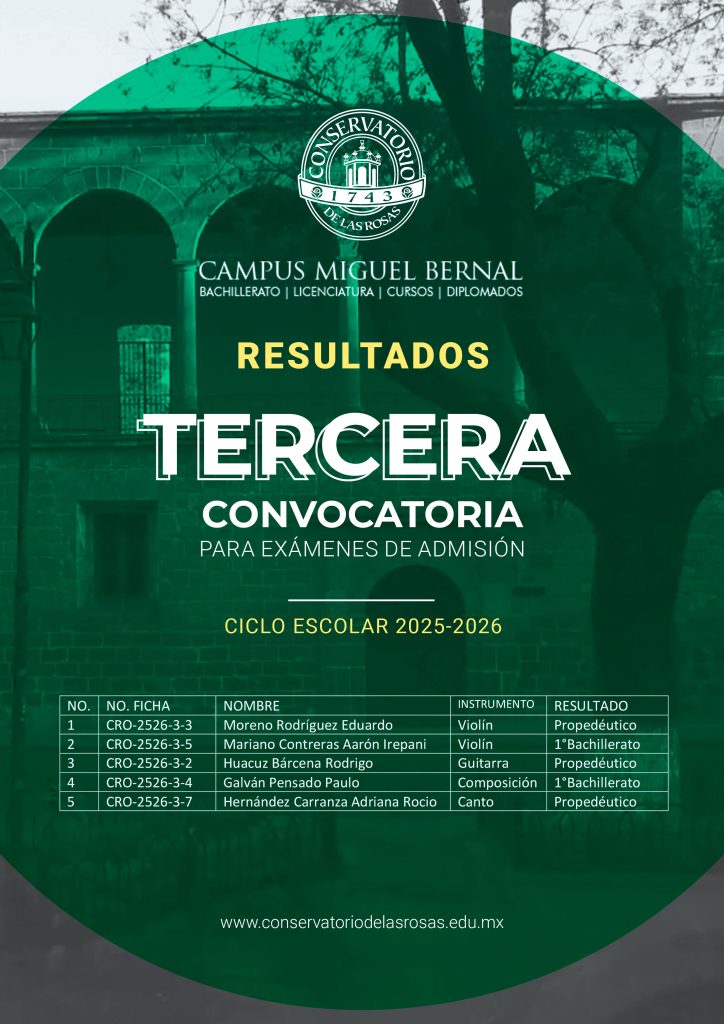 Resultados Tercera Convocatoria Examenes de Admisión Ciclo 2025-2026