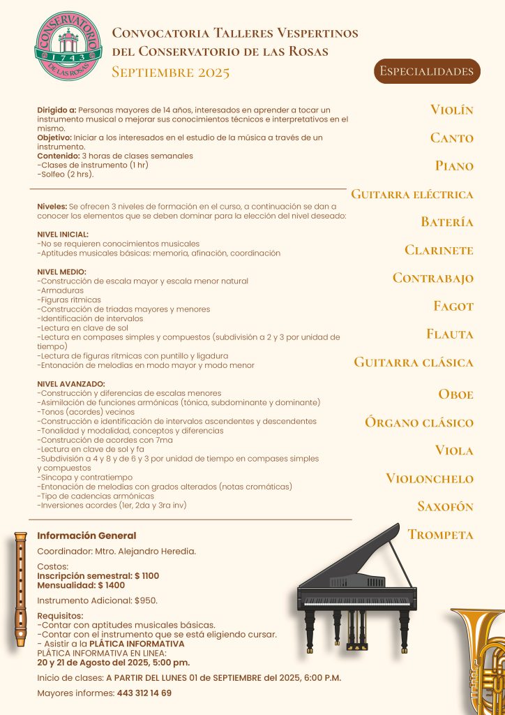 Convocatoria a talleres vespertinos septiembre 2025